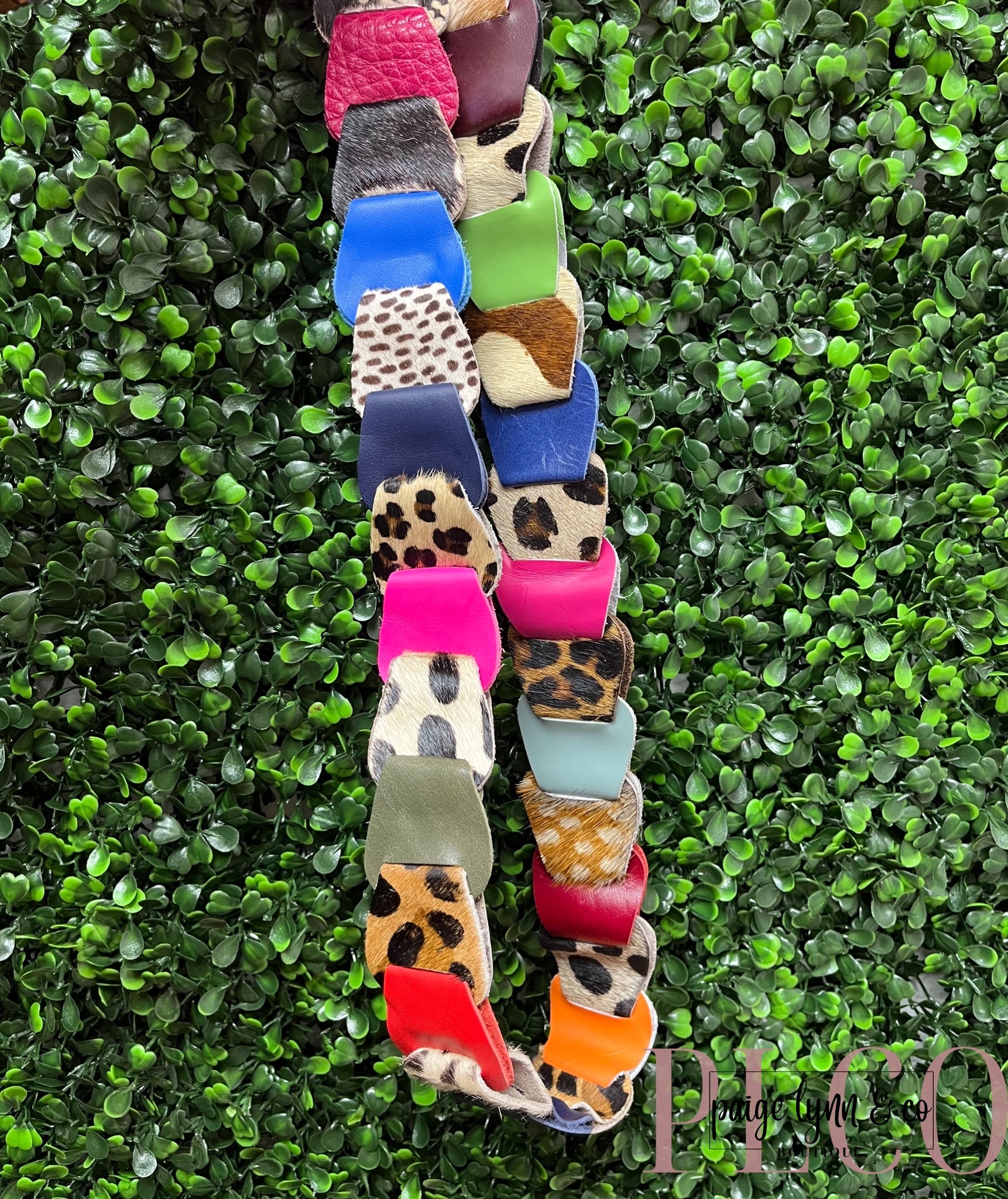 Leather Hair on Hide Patchwork Animal Print Strap. Style C